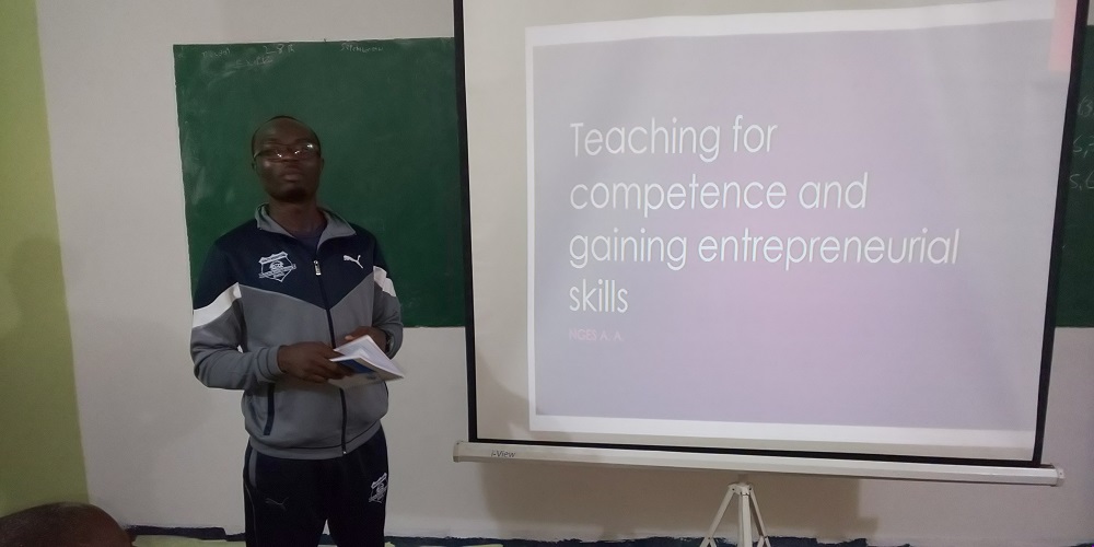 The manager’s presentation was immediately followed by a presentation on the CBA approach titled “the competency-based approach: why and how†by Mr Toulack. After that, there was another presentation by Mr Zikiru on Leadership. The worship team then came up with some soul-searching songs, which they sang for a good forty minutes. The worship time was succeeded by a presentation by Mr Mbinkar. He talked on the use of technology in education and distance education. After that, Mr Egbe gave a brief talk on the events that took place at the pedagogic seminar that took place at GBHS Etoug-ebe. The fifth speaker, Mr Nges discussed “Teaching to develop competencies and entrepreneurial skillsâ€. After the presentations, there was a Q and A session, which lasted for a good forty-five minutes.